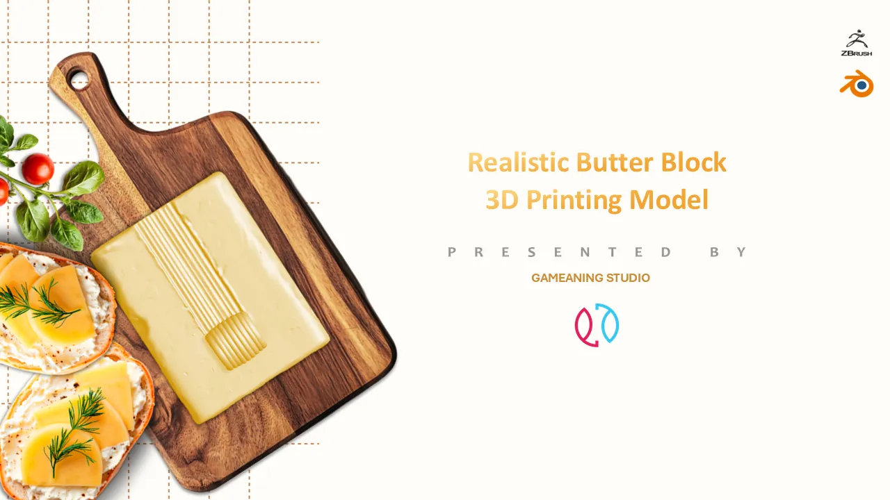 A realistic 3D model of a butter block created to be 3D printed. The model
