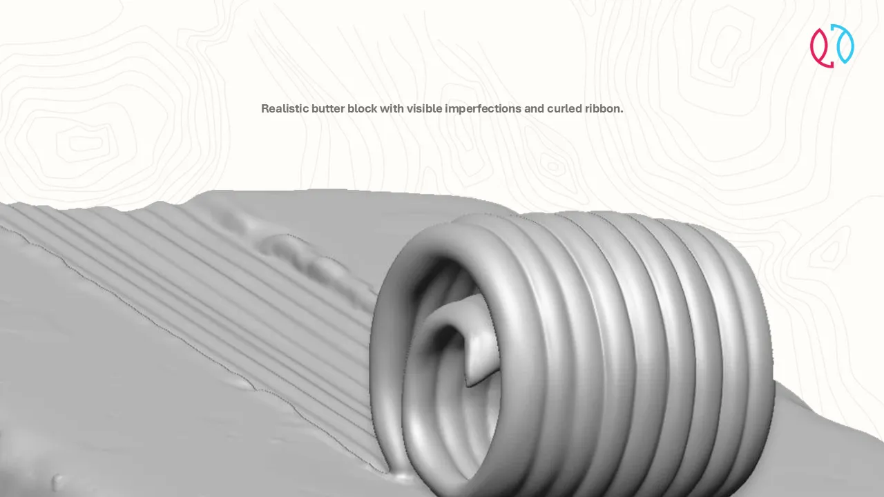 highlights surface imperfections, soft organic shapes, and a curled butter ribbon sculpted