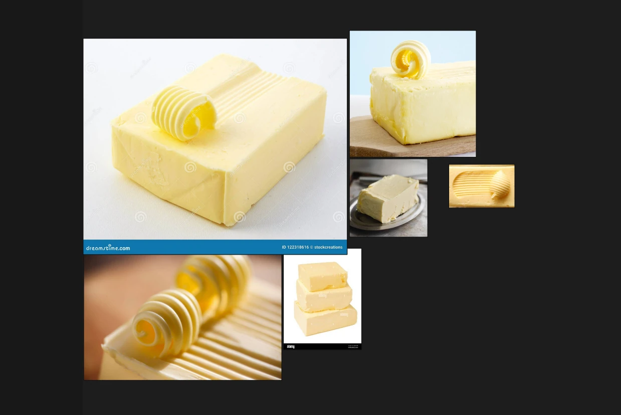 Gathering lots of references of butter with different shapes and forms in different lighting scenarios to ensure complete understanding of the product.